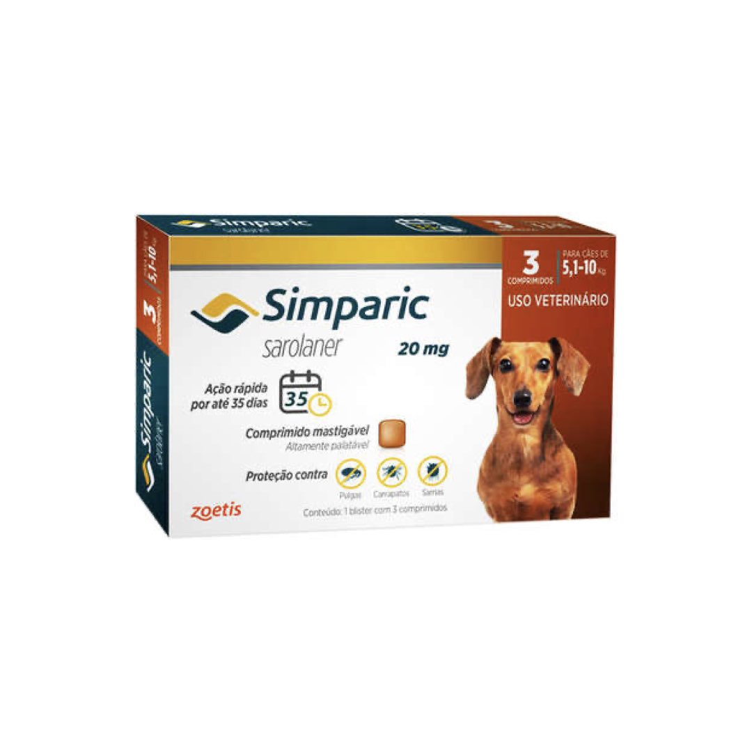 ANTIPULGAS E CARRAPATOS ZOETIS SIMPARIC 20MG C/ 3 COMPRIMIDOS