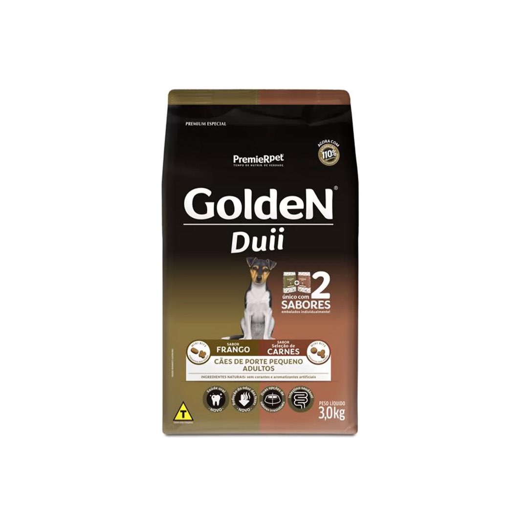 RAÇÃO GOLDEN CÃES ADULTOS DUII FRANGO E CARNE MINI BITS 3KG